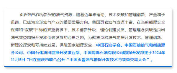 重磅!中國頁巖油氣勘探開發技術與裝備交流大會定于2024年11月5日-7日在重慶市召開
